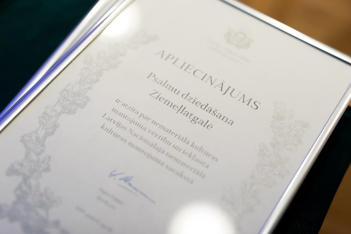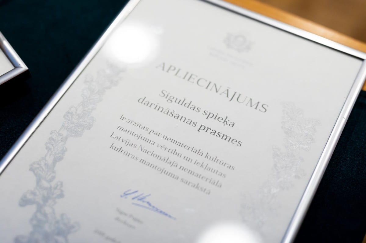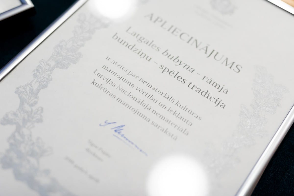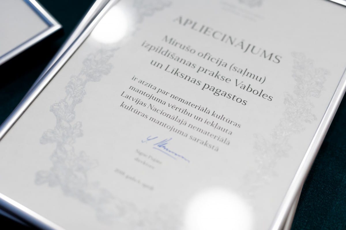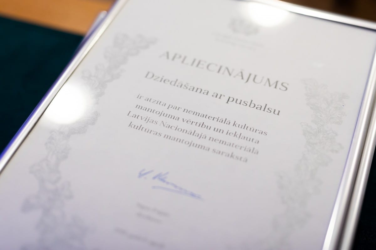 2018.gada 6.aprīlī pirmo reizi pasniegti apliecinājumi par nemateriālā kultūras mantojuma vērtību iekļaušanu Latvijas Nacionālajā Nemateriālā kultūras mantojuma sarakstā. Svinīgā ceremonijā Turaidas muzejrezervātā apliecinājumus saņēma četri vērtību pieteicēji – Balvu novada pašvaldība, Daugavpils novada pašvaldība, Siguldas novada pašvaldība un biedrība “Skaņumāja”. Fotogrāfs - Reinis Oliņš