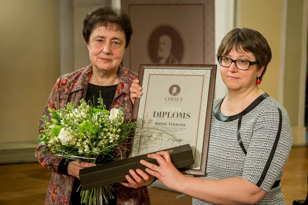 2015. gada 30. aprīlī, plkst. 12.00 Jāzepa Vītola Latvijas Mūzikas akadēmijā notika Kultūras ministrijas apbalvojuma pasniegšana kultūrizglītības nozares talantīgākajiem audzēkņiem, viņu skolotājiem un koncertmeistariem. Vienlaikus ar Kultūras ministrijas balvu tika pasniegta arī LNKC iedibinātā Cimzes balva. Cimzes balvu izcilākajiem kultūrizglītības skolotājiem šogad saņēma Rīgas Dizaina un mākslas vidusskolas (RDMV) skolotāja, Keramikas izstrādājumu dizaina izglītības nodaļas vadītāja Inese Pētersone un Jūrmalas Mūzikas vidusskolas klavierspēles skolotāja Irēne Štrause.