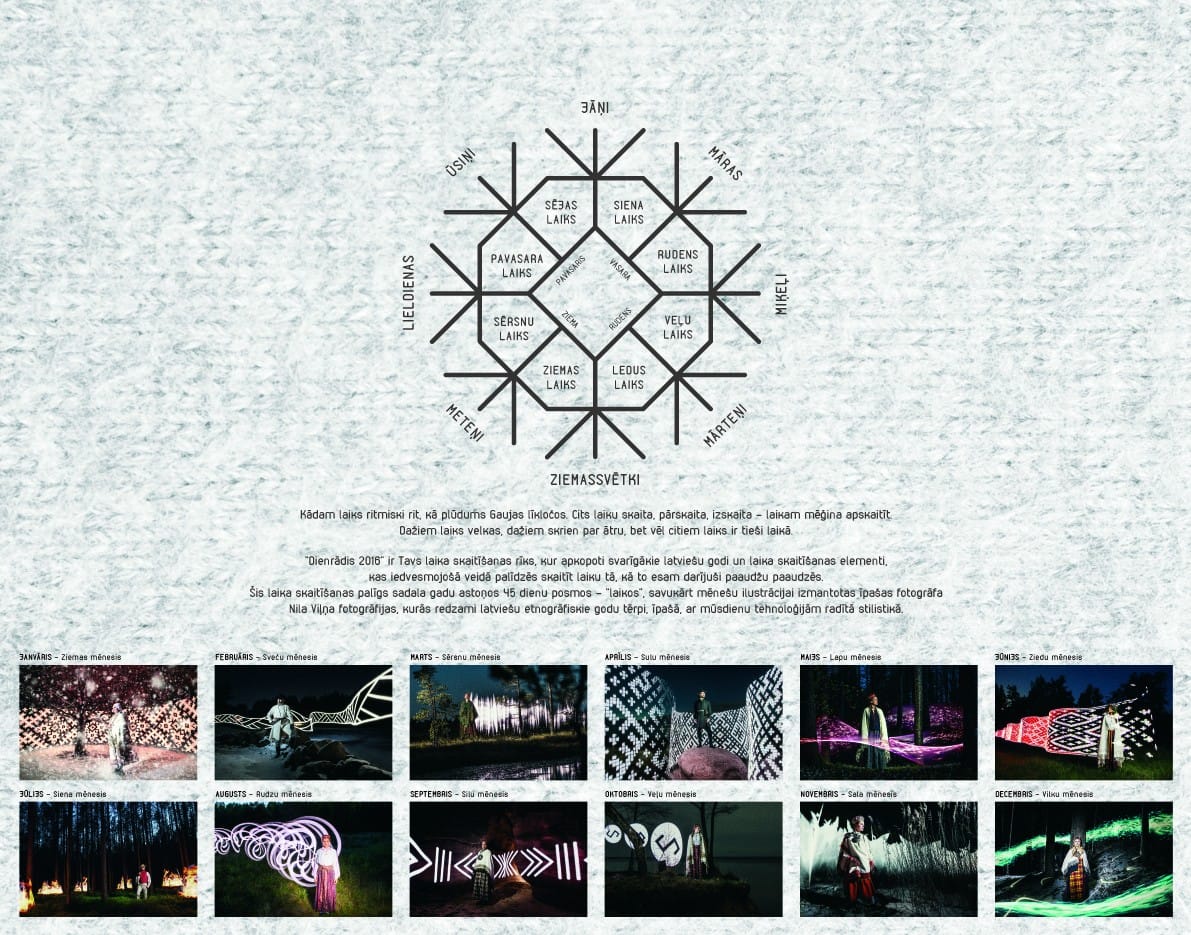 Lai mūsdienīgi un radoši iepazīstinātu ar latviešu tautas tērpu dažādību un veicinātu tautas tērpu valkāšanu, Latvijas Nacionālais kultūras centrs (LNKC) ir uzsācis projektu „Katram savu tautas tērpu”. Tā pirmajā posmā fotogrāfs Nils Vilnis veidojis unikālas fotogrāfijas kalendāram – „Dienrādis 2016”. „Dienrāža” fotogrāfijas tapušas dabiskā vidē Latvijas Etnogrāfiskajā brīvdabas muzejā, pie Veczemju klintīm, Ķemeru purvā un tā apkārtnē. Tas pastiprina fotogrāfijas noskaņu un palīdz uzburt tēlus, savukārt mūsdienu tehnoloģijas dod iespēju radīt pasaku un mistiskas senatnes sajūtu fotografēšanas procesā.