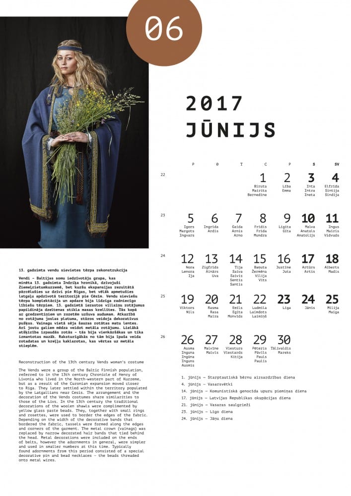 Latvijas Nacionālais kultūras centrs projekta “Katram savu tautastērpu” ietvaros izdevis kalendāru un plānotāju – “Dienrādis 2017”, kas šoreiz iepazīstina ar arheoloģisko tērpu. Izdevumu veidošanā piedalījušies Latvijas izcilākie tautastērpu eksperti, pētnieki un entuziasti. Kalendārā iekļauti arheoloģisko tērpu apraksti latviešu un angļu valodā, savukārt plānotāja saturu papildina arī informācija par dažādām tēmām, kas saistītas ar arheoloģisko tērpu valkāšanas laika vēsturisko fonu un sadzīvi – pārtiku, tirgošanos, ieročiem un darbarīkiem, rotaļlietām un traukiem, kā arī rotām, tekstilmateriālu apstrādi un ornamentiem. “Dienrādis 2017” jau pieejams Latvijas Nacionālajā kultūras centrā Rīgā, Pils laukumā 4 un drīzumā arī grāmatnīcās visā Latvijā. Informācija: www.katramsavutautasterpu.lv