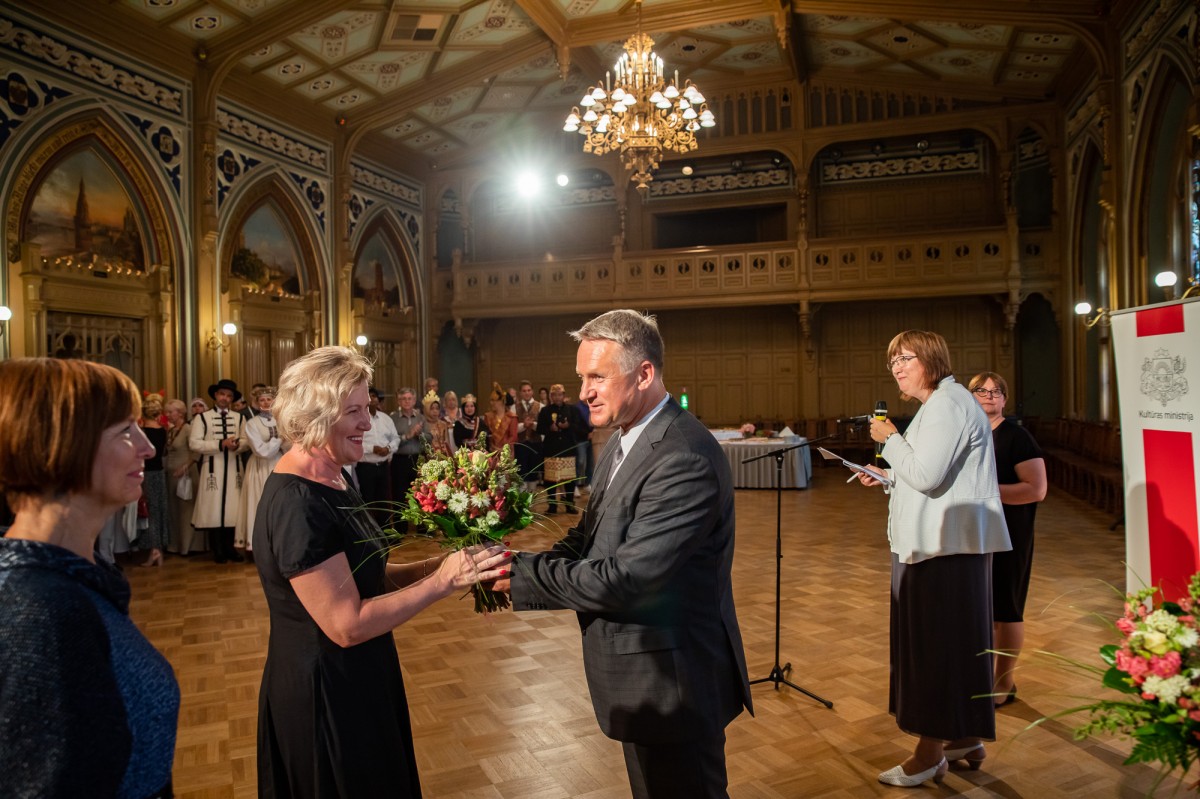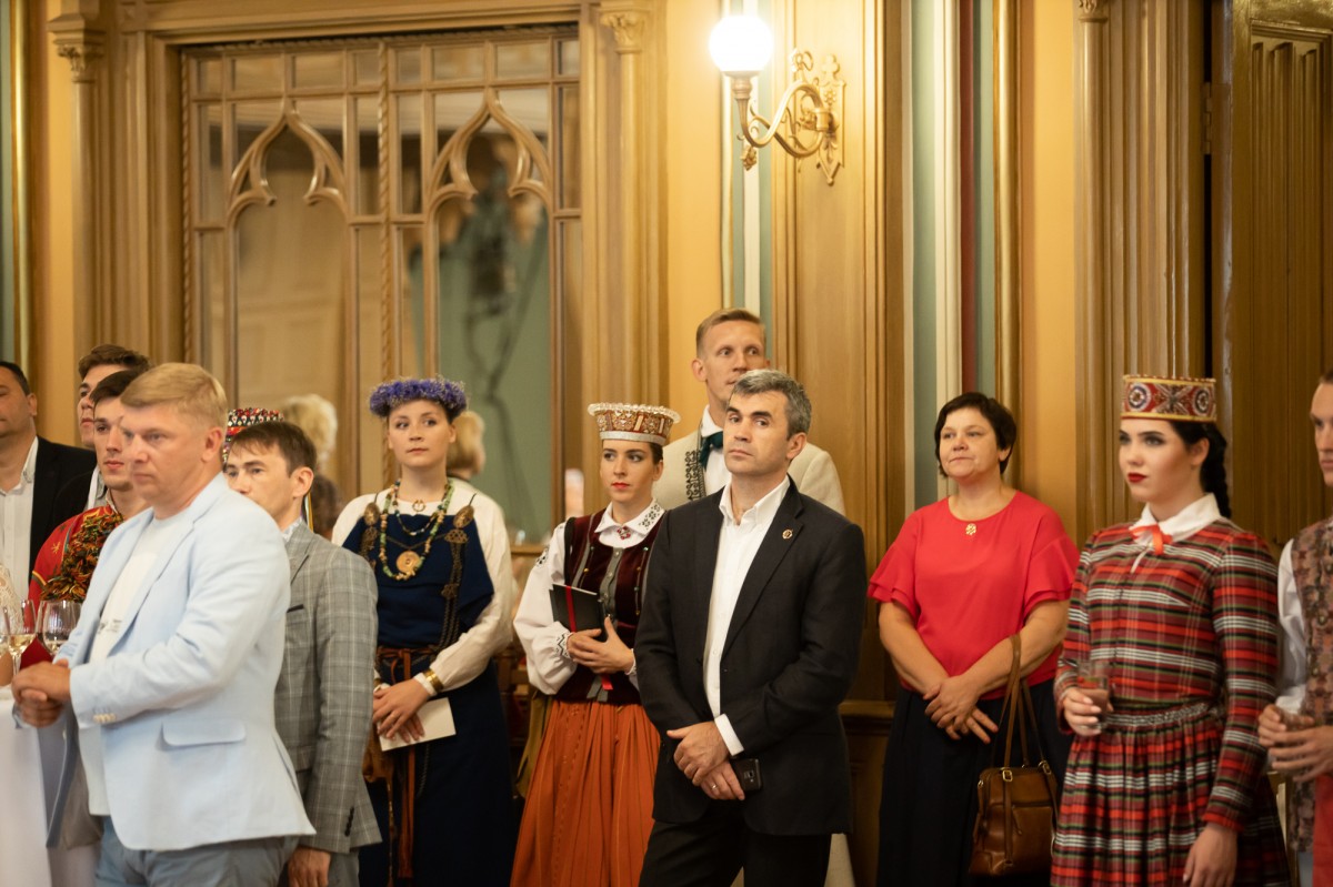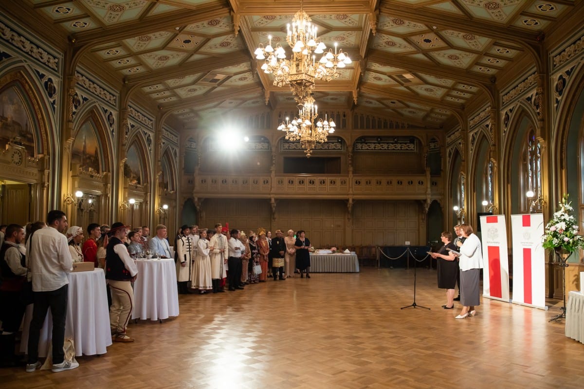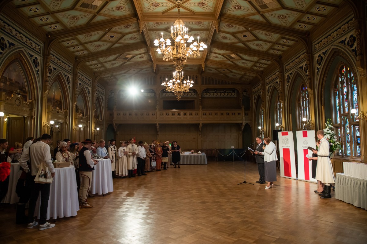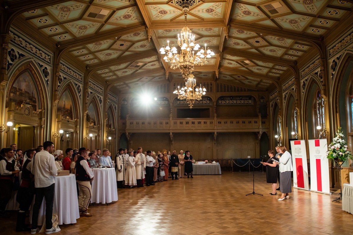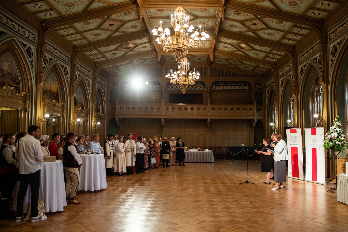 Kultūras ministrijas un Latvijas Nacionālā kultūras centra rīkota pieņemšana par godu IX Starptautiskajam tautas deju festivālam "Sudmaliņas" Mazajā ģildē