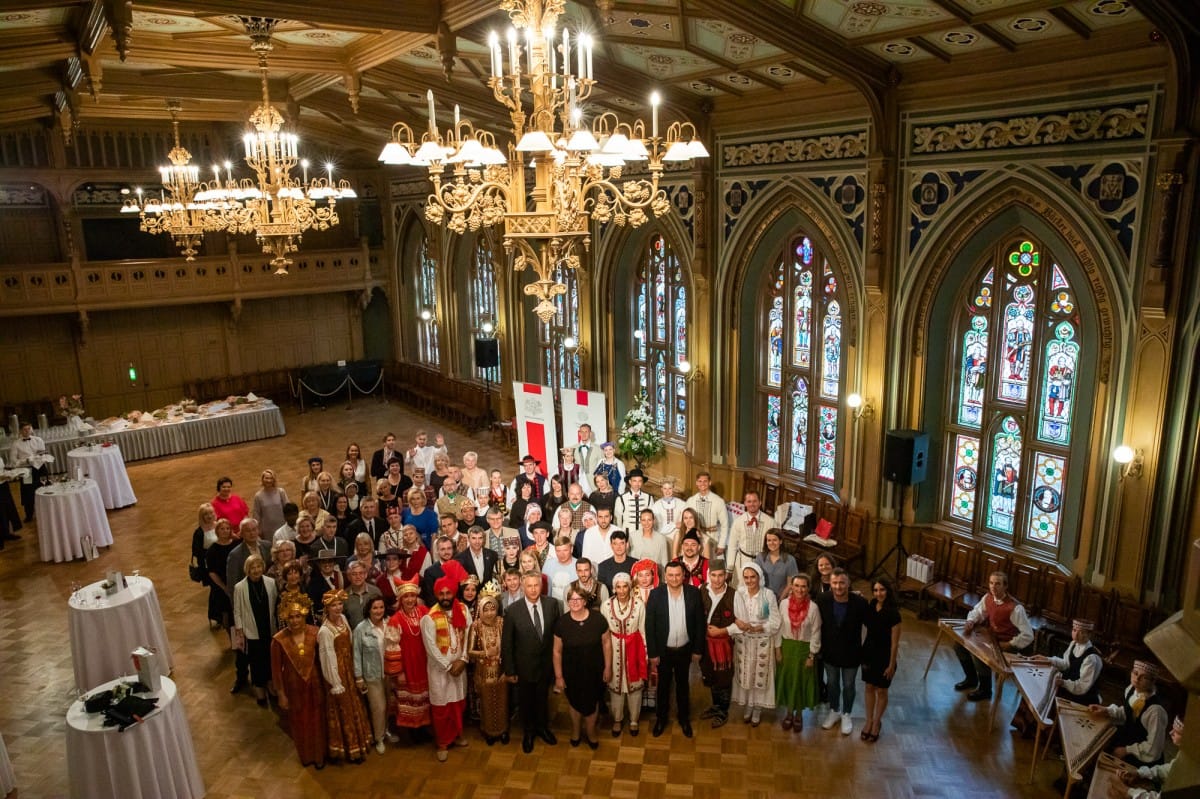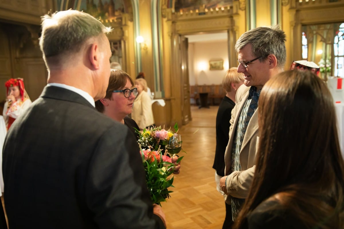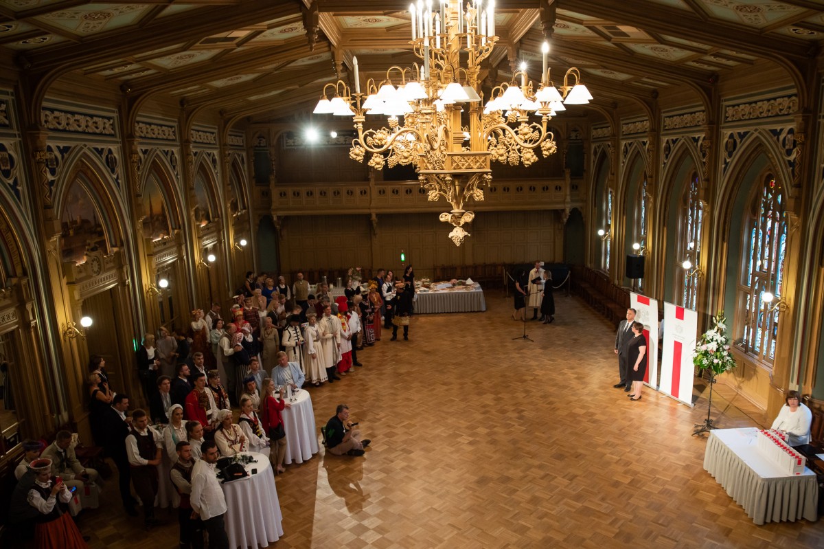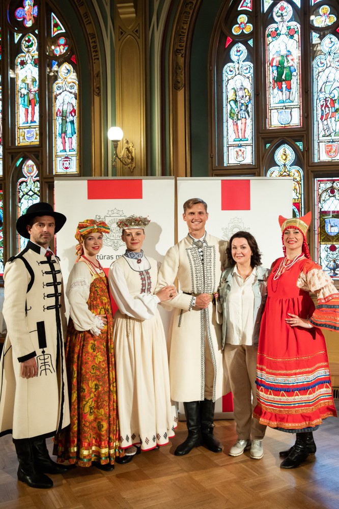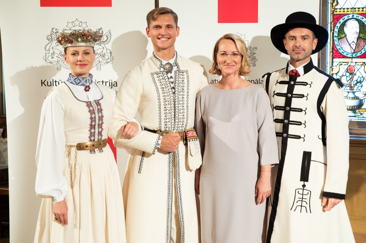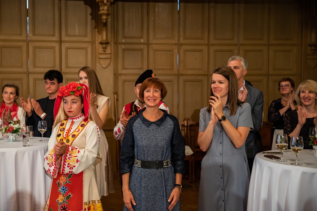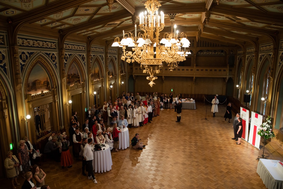 Kultūras ministrijas un Latvijas Nacionālā kultūras centra rīkota pieņemšana par godu IX Starptautiskajam tautas deju festivālam "Sudmaliņas" Mazajā ģildē