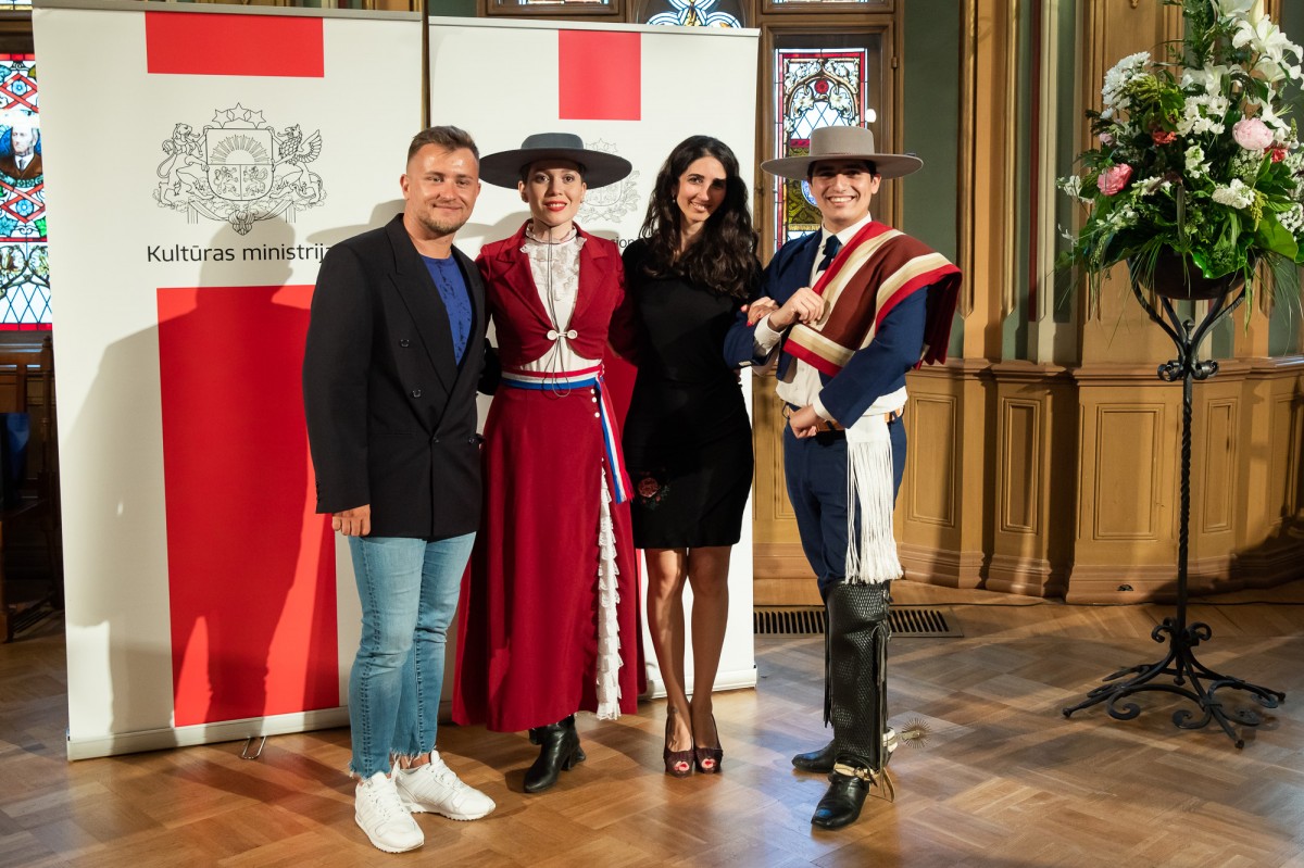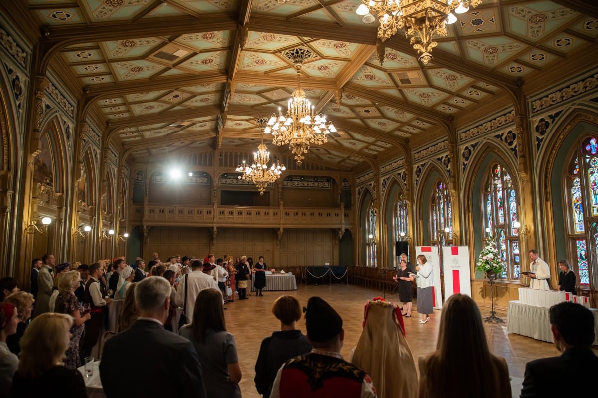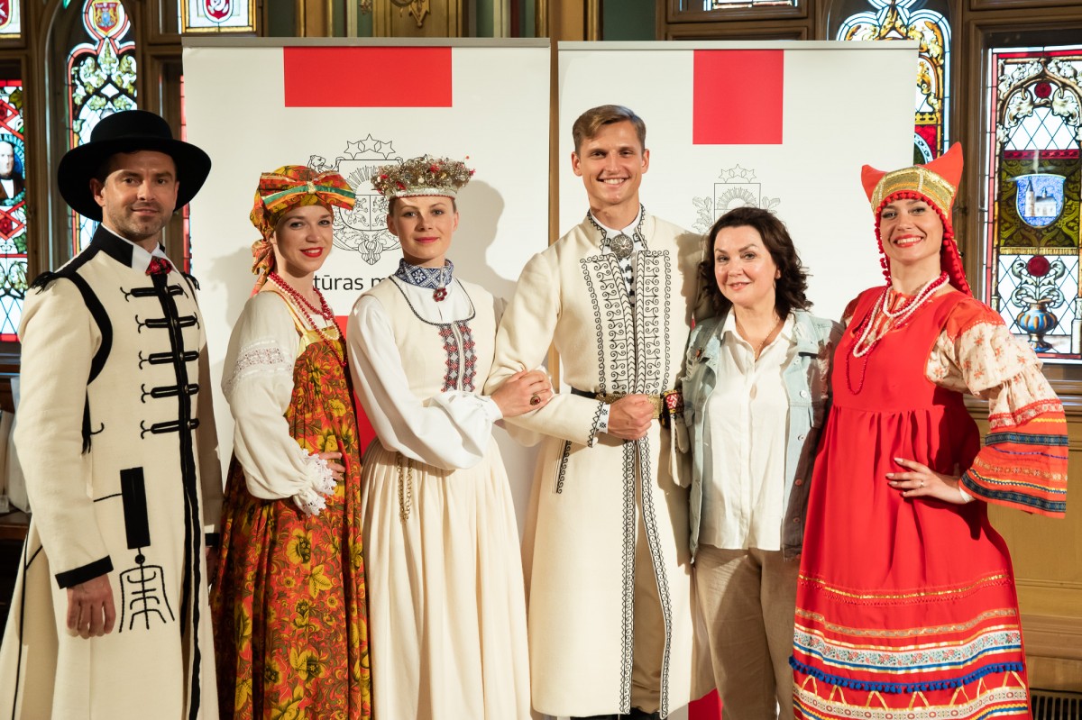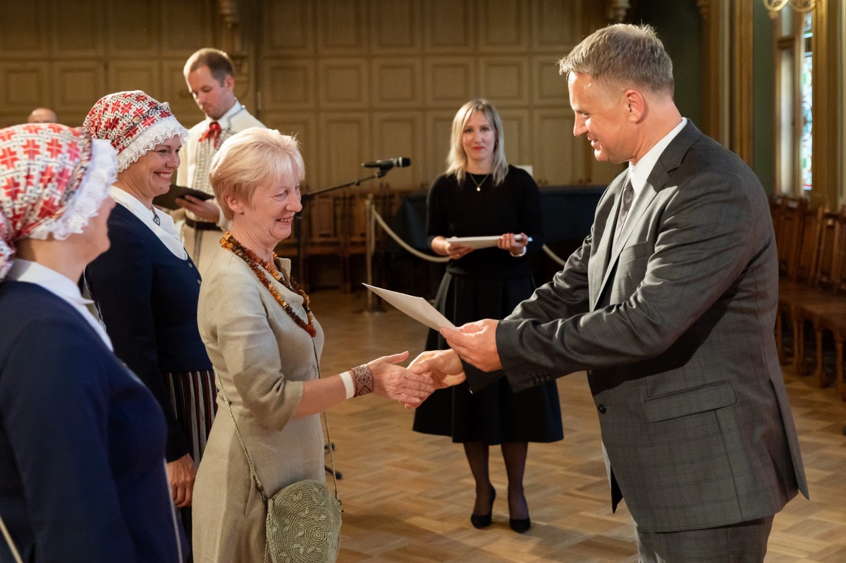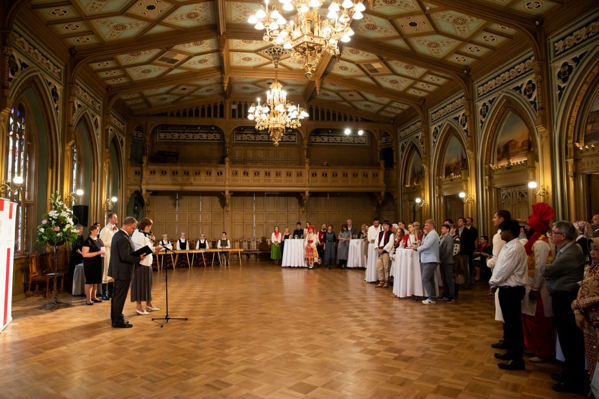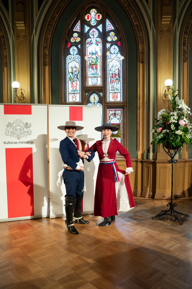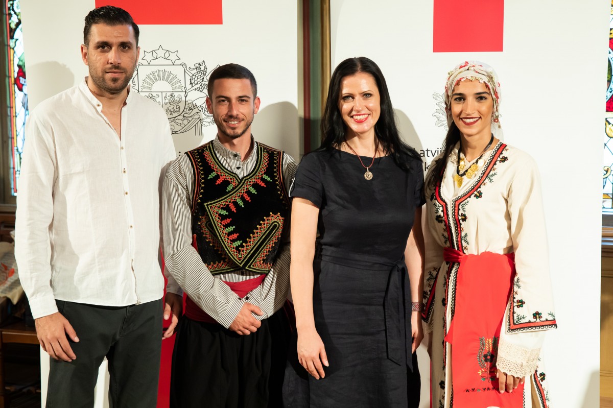 Kultūras ministrijas un Latvijas Nacionālā kultūras centra rīkota pieņemšana par godu IX Starptautiskajam tautas deju festivālam "Sudmaliņas" Mazajā ģildē