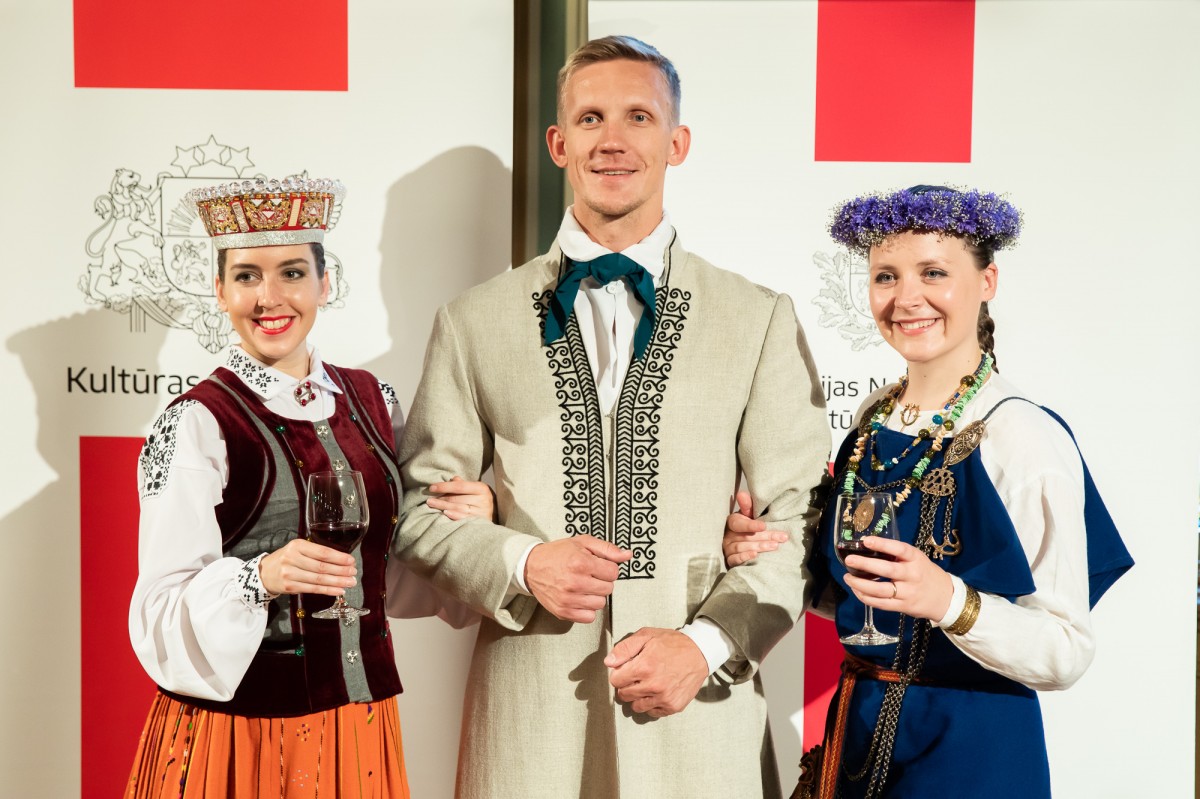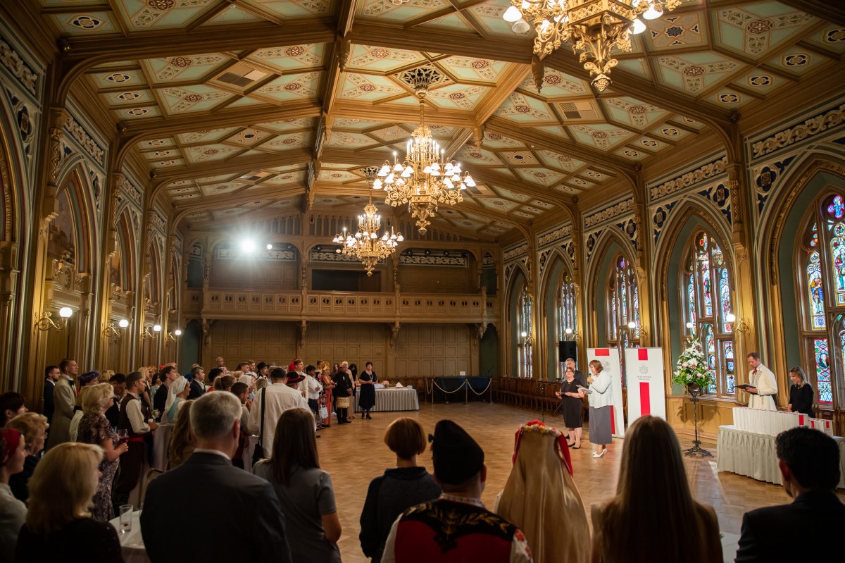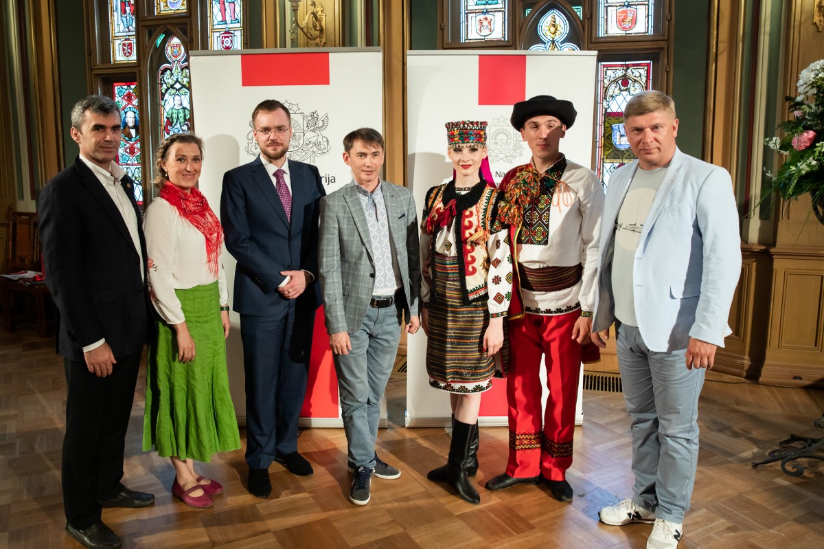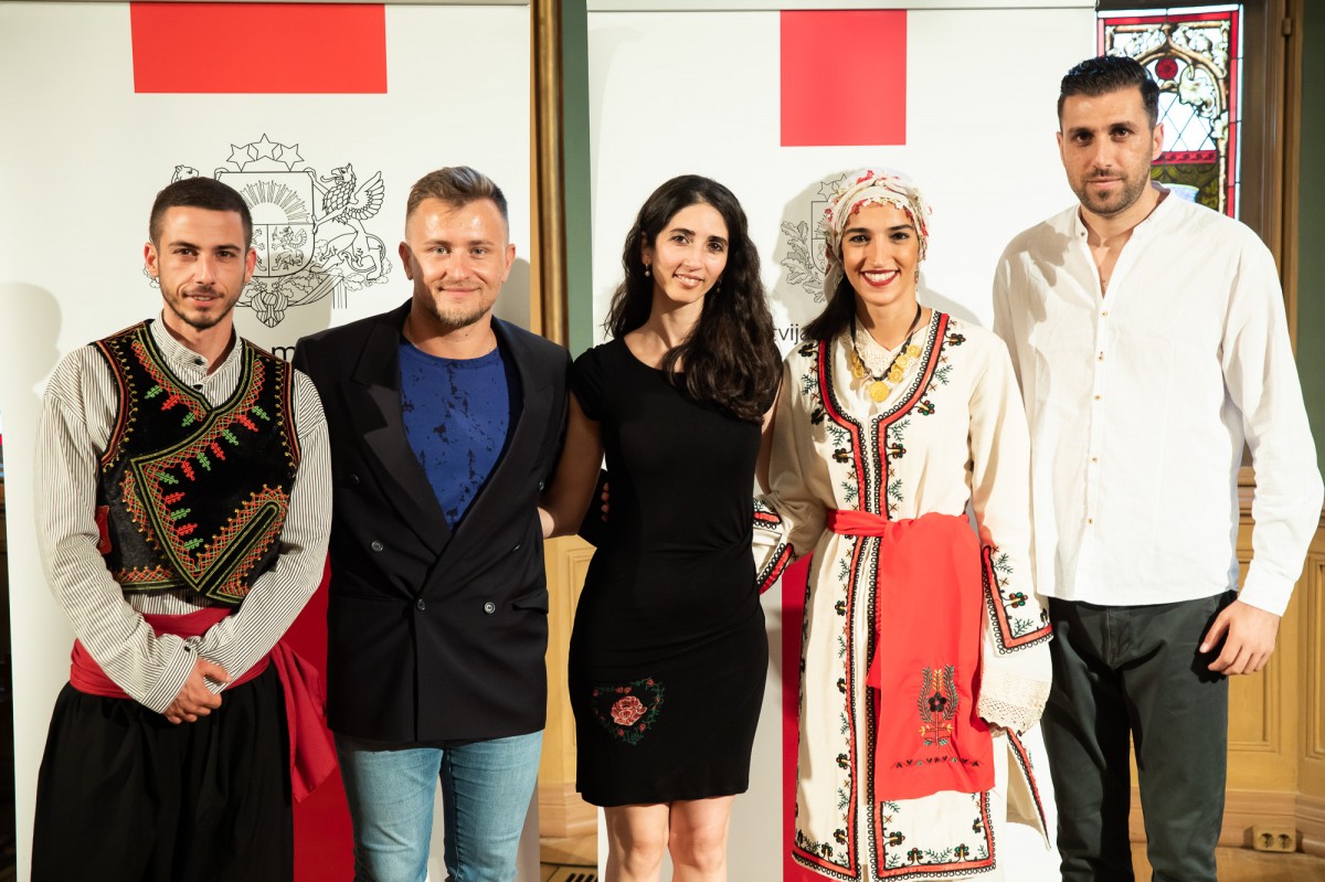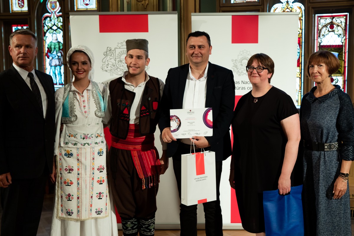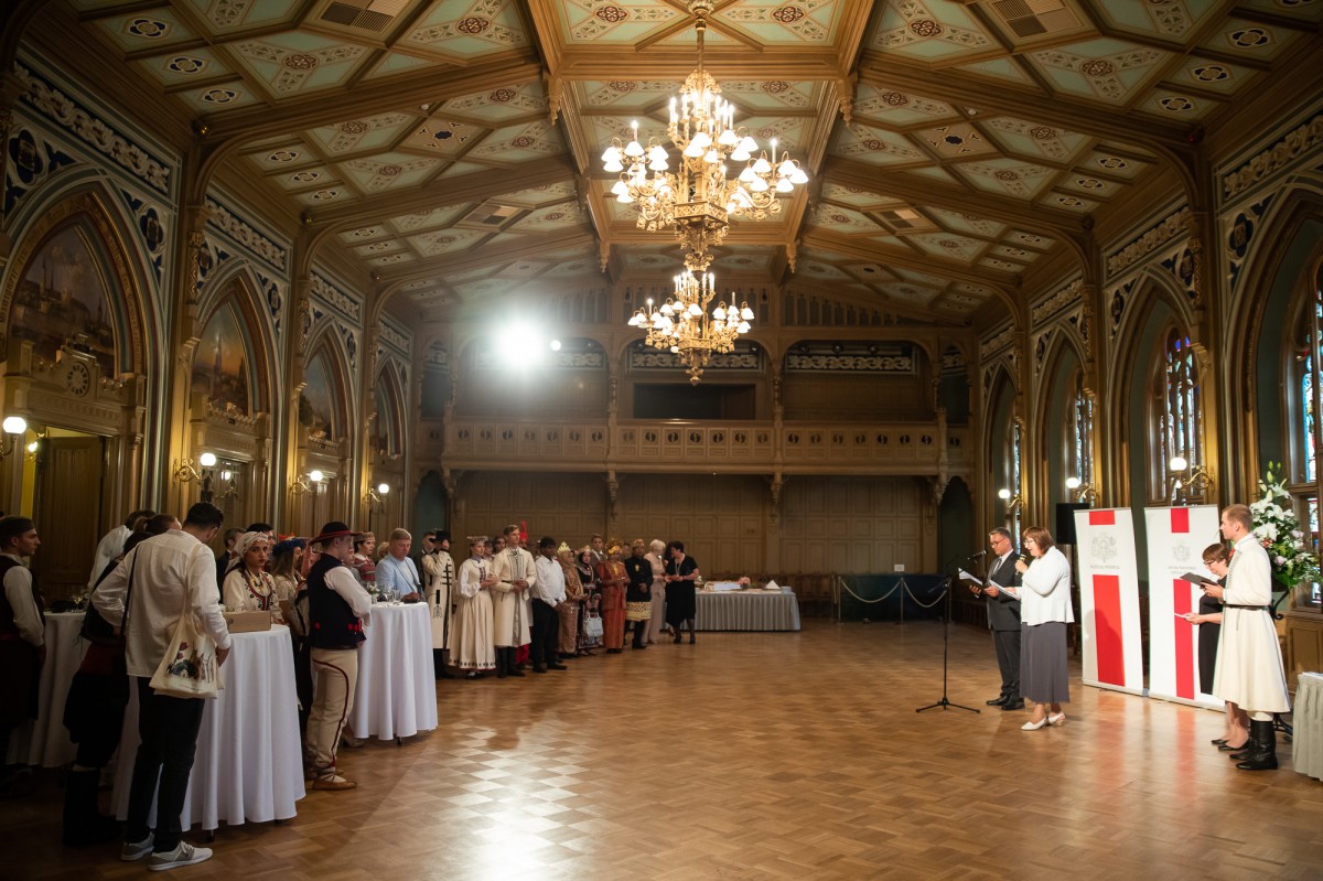Kultūras ministrijas un Latvijas Nacionālā kultūras centra rīkota pieņemšana par godu IX Starptautiskajam tautas deju festivālam "Sudmaliņas" Mazajā ģildē