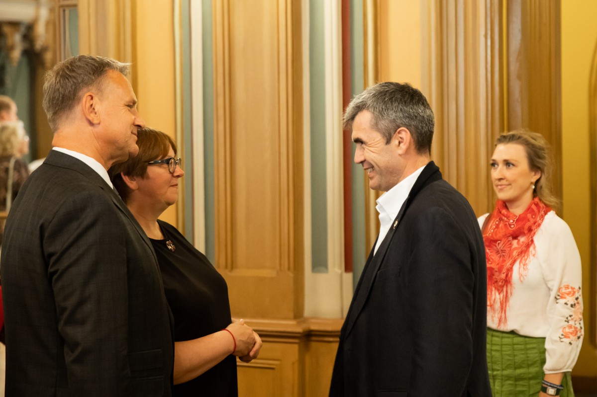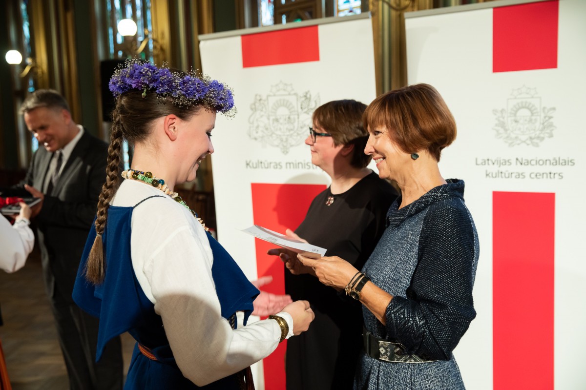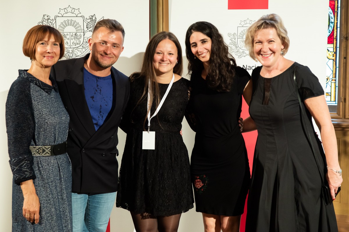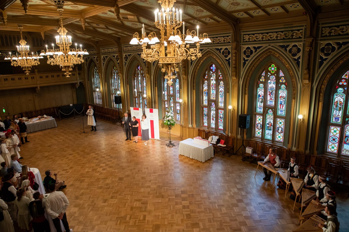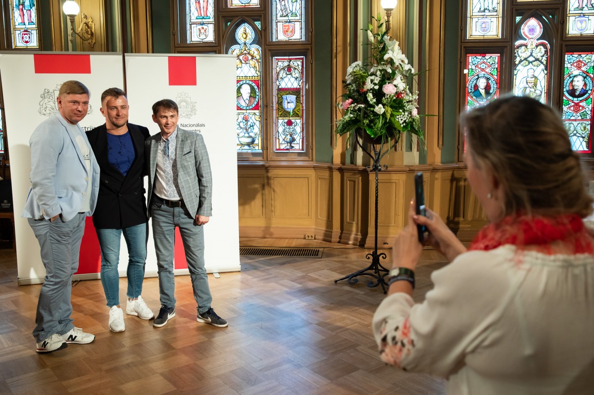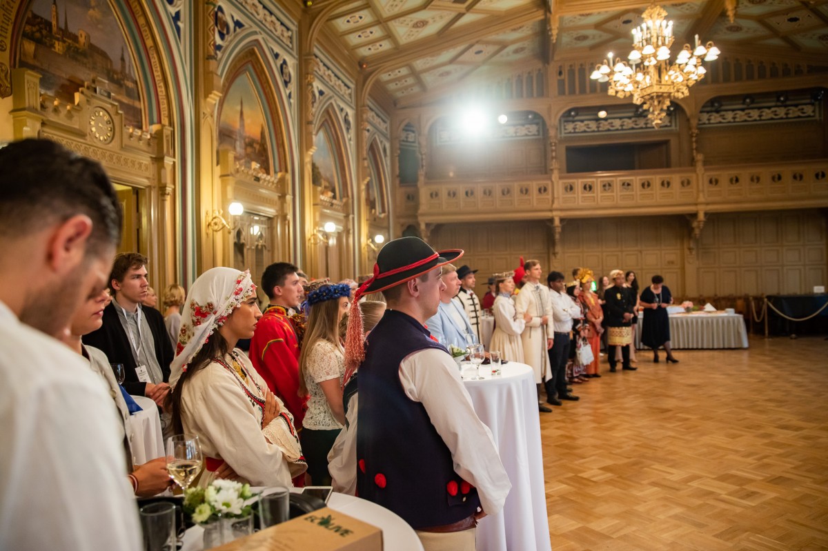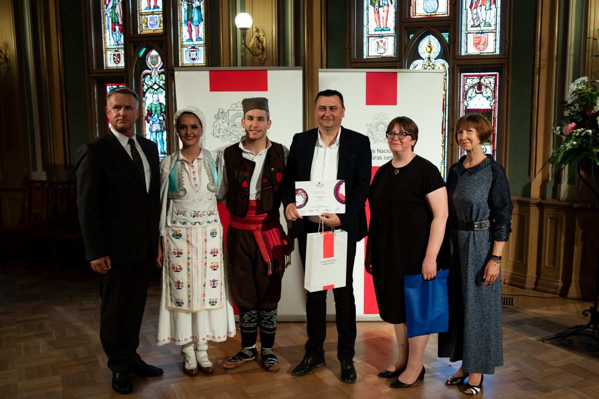 Kultūras ministrijas un Latvijas Nacionālā kultūras centra rīkota pieņemšana par godu IX Starptautiskajam tautas deju festivālam "Sudmaliņas" Mazajā ģildē