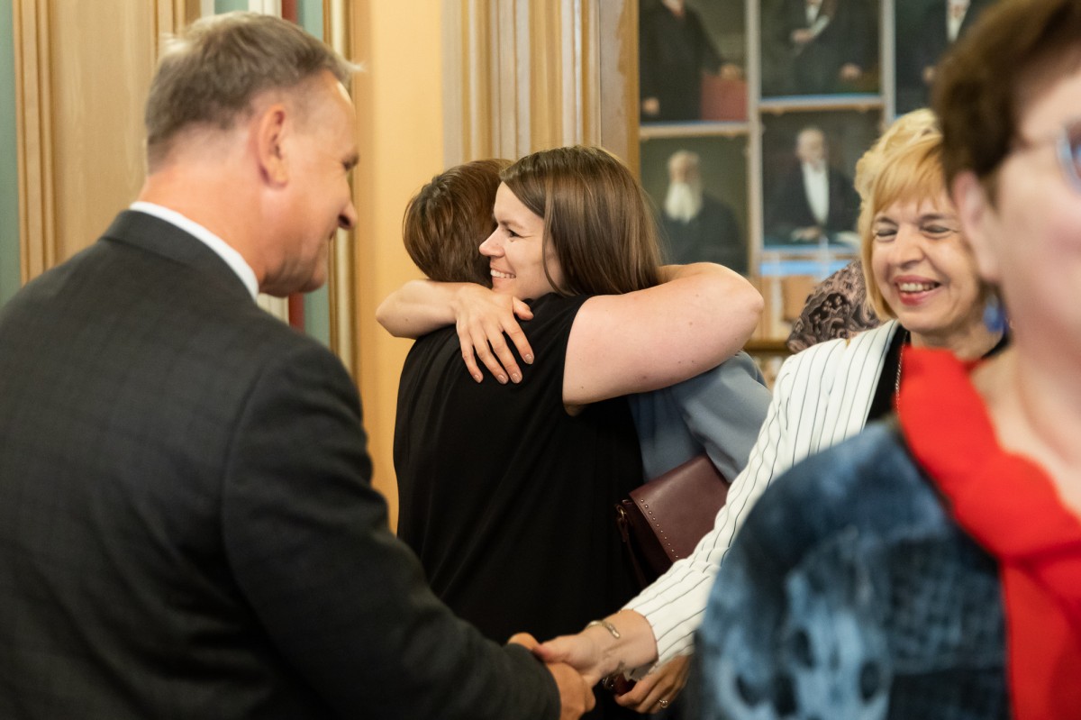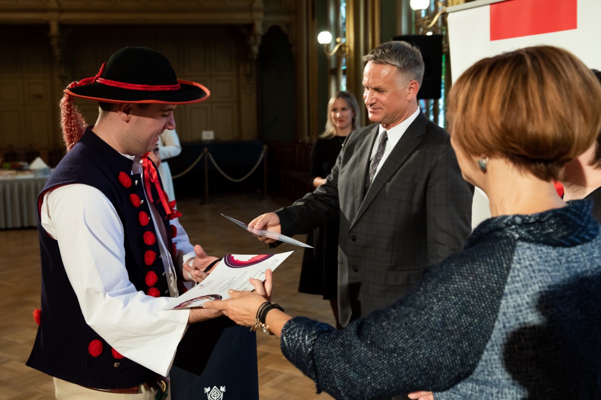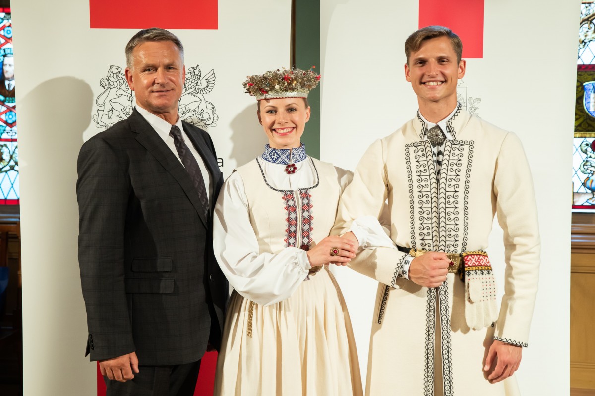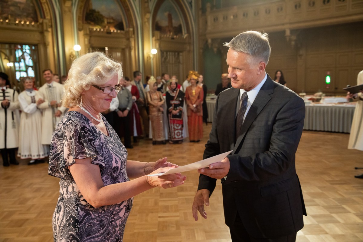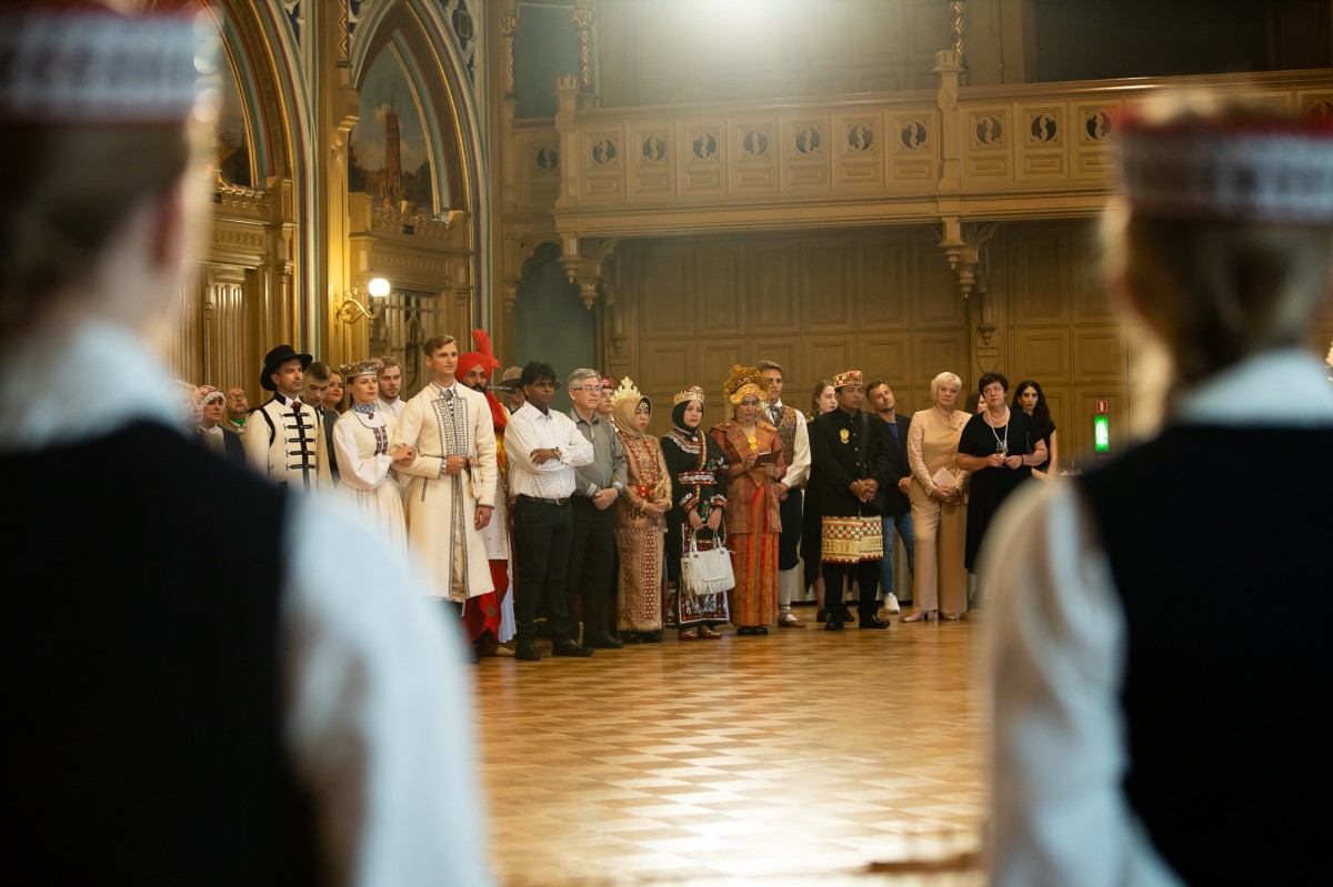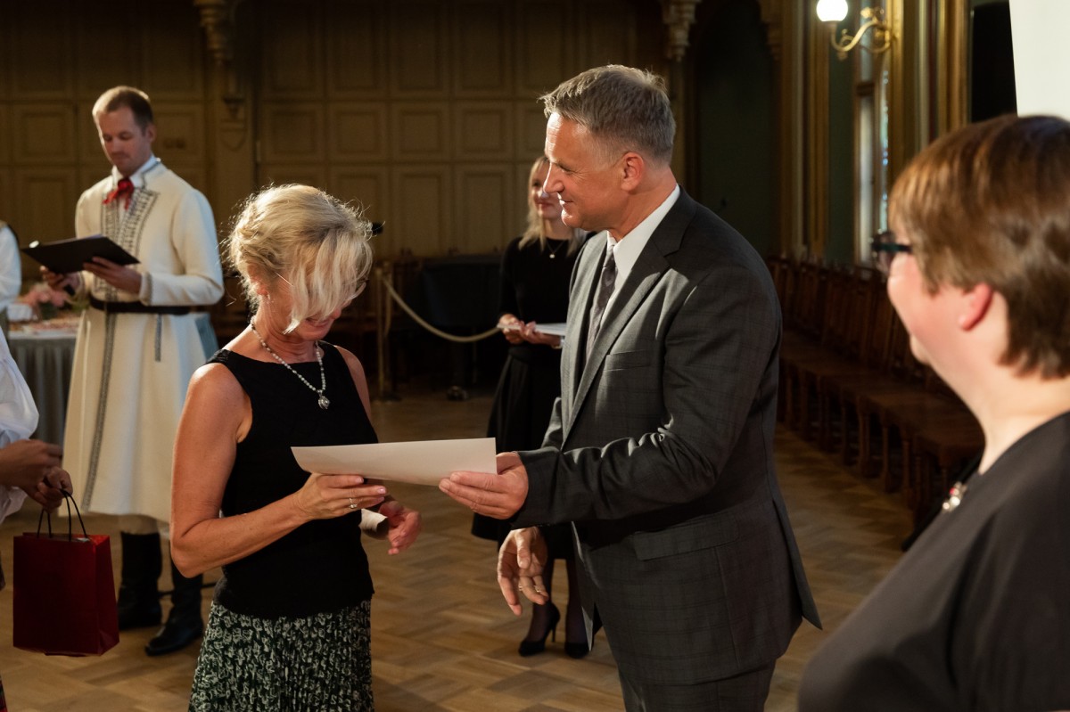 Kultūras ministrijas un Latvijas Nacionālā kultūras centra rīkota pieņemšana par godu IX Starptautiskajam tautas deju festivālam "Sudmaliņas" Mazajā ģildē