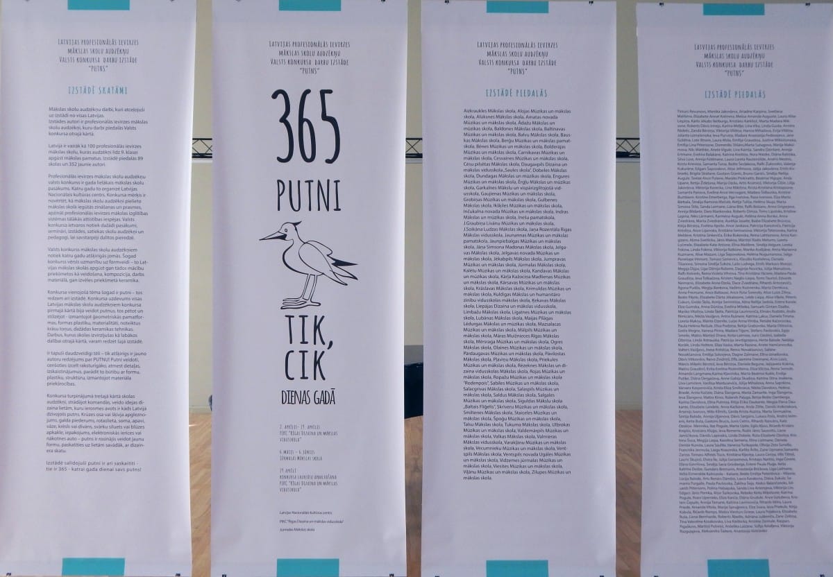 Rīgas Dizaina un mākslas vidusskolā atklāta Latvijas mākslas skolu audzēkņu izstāde “365 putni”. Jauno mākslinieku darbi uz Rīgu atceļojuši no visas Latvijas - izstādes autori ir 352 mākslas skolu audzēkņi no 89 skolām. Izstāde notiek Latvijas profesionālās ievirzes mākslas skolu audzēkņu valsts konkursa ietvaros.