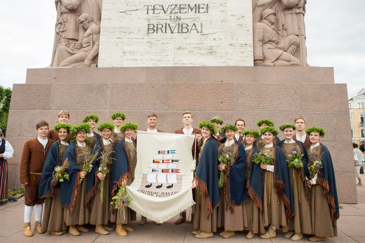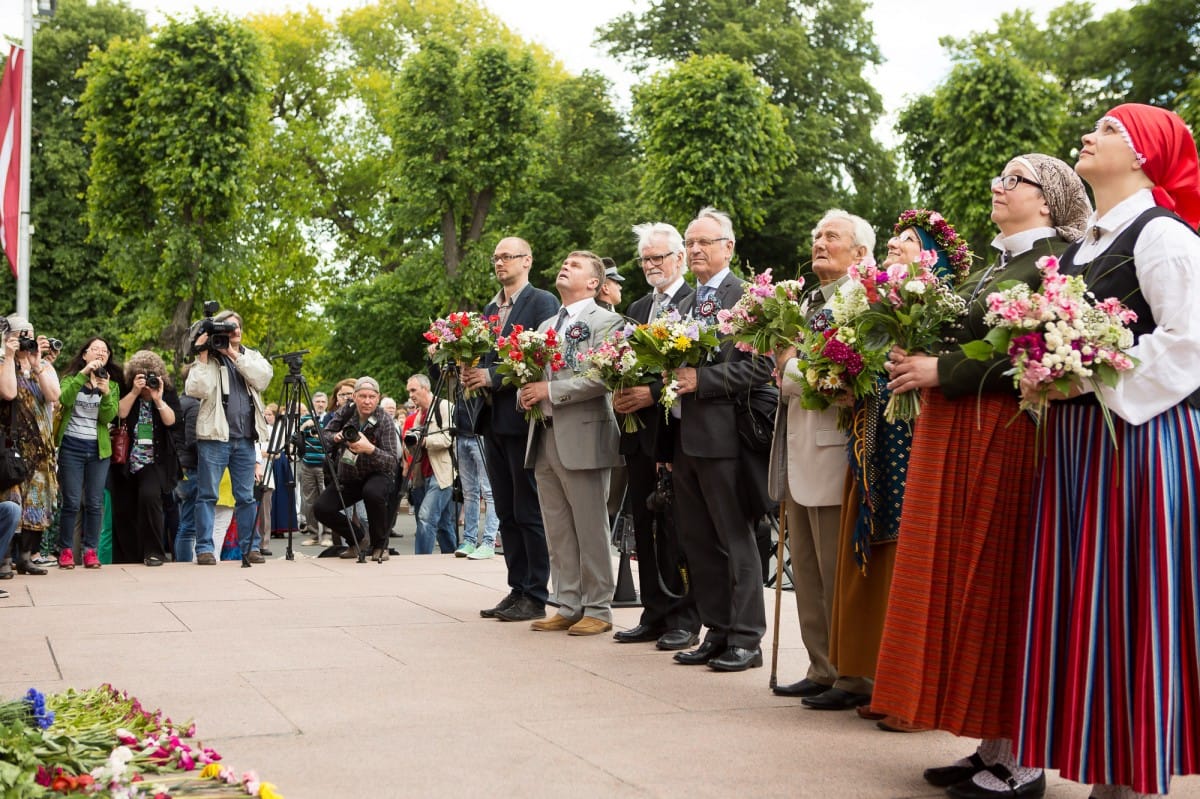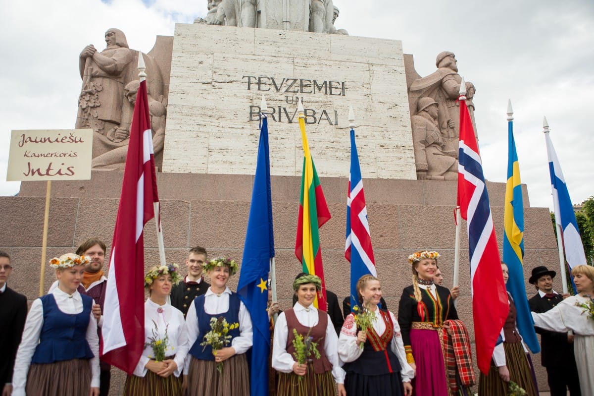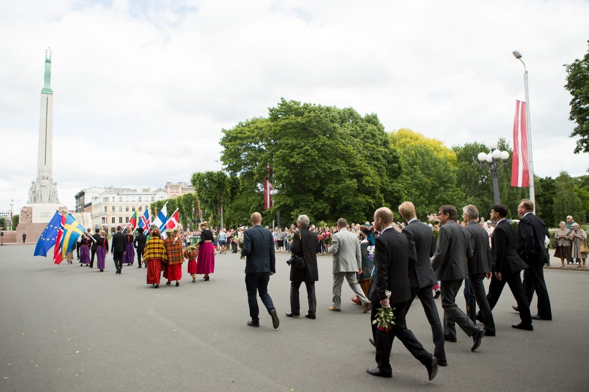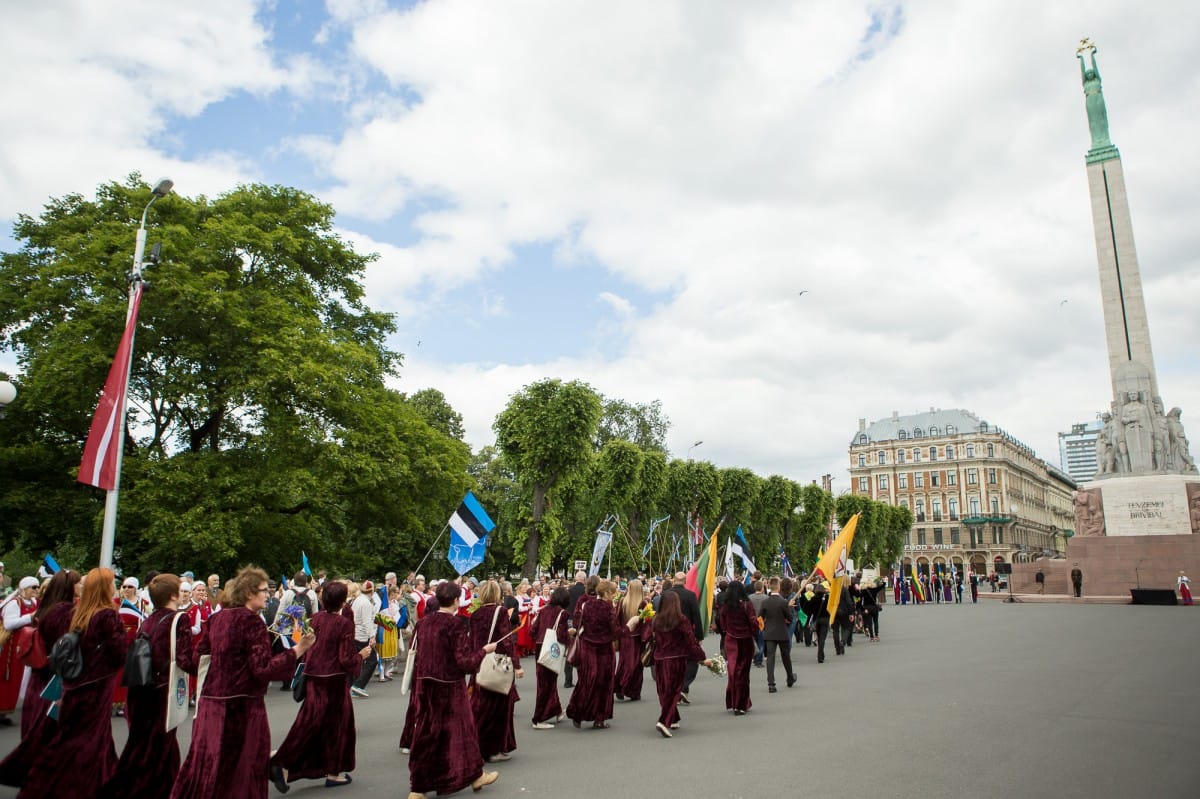 2015. gada 26. jūnijā VIII Ziemeļu un Baltijas valstu Dziesmu svētki devās gājienā no Pils laukuma līdz Brīvības piemineklim, šķērsojot Doma un Līvu laukumus. Pie Brīvības pieminekļa kori vienojās kopīgā dziesmā, izpildot “Saule, Pērkons, Daugava” svētku mākslinieciskā vadītāja, diriģenta Romāna Vanaga vadībā. Pie klavierēm bija komponists Mārtiņš Brauns. Pēc gājiena dalībnieki devās uz mēģinājumu Mežaparka Lielajā estrādē, lai gatavotos Noslēguma koncertam.
