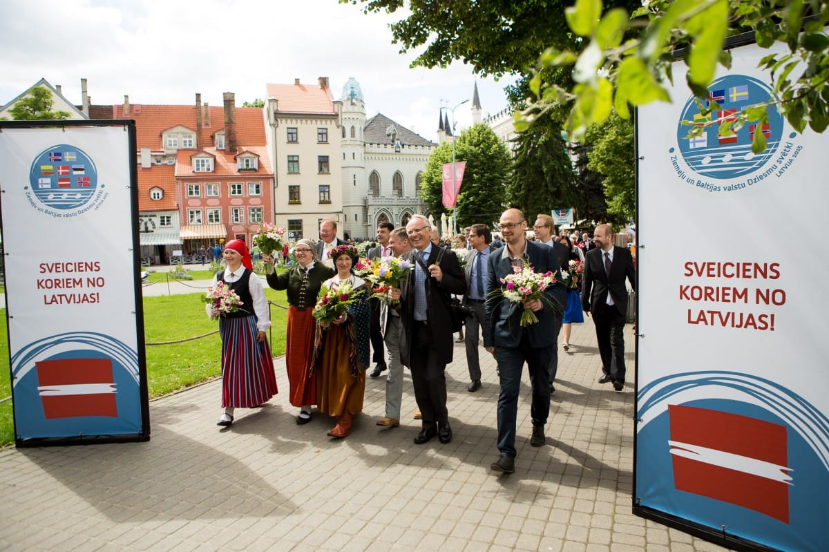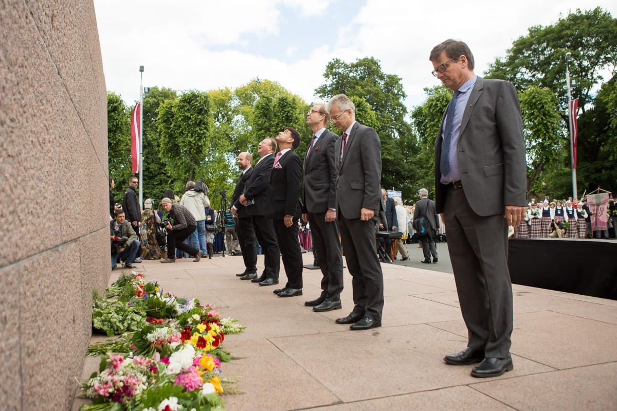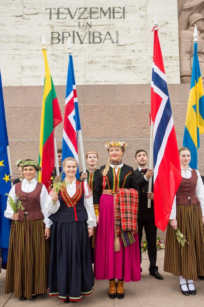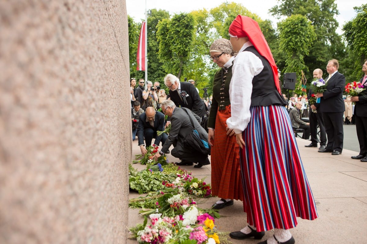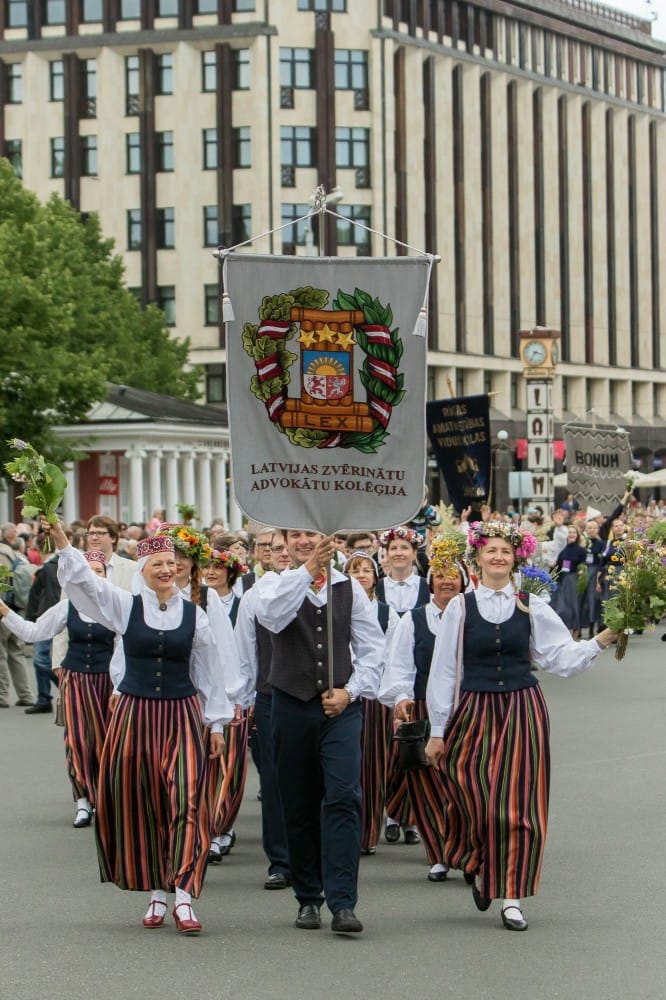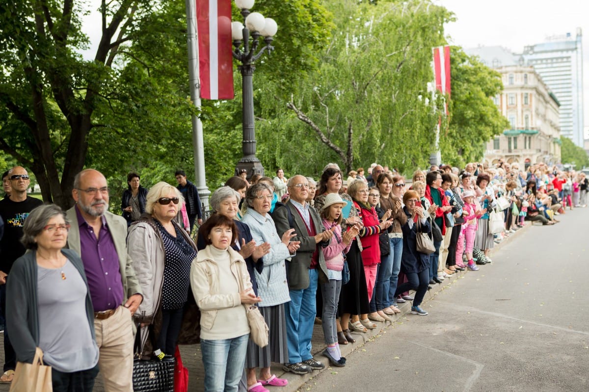 2015. gada 26. jūnijā VIII Ziemeļu un Baltijas valstu Dziesmu svētki devās gājienā no Pils laukuma līdz Brīvības piemineklim, šķērsojot Doma un Līvu laukumus. Pie Brīvības pieminekļa kori vienojās kopīgā dziesmā, izpildot “Saule, Pērkons, Daugava” svētku mākslinieciskā vadītāja, diriģenta Romāna Vanaga vadībā. Pie klavierēm bija komponists Mārtiņš Brauns. Pēc gājiena dalībnieki devās uz mēģinājumu Mežaparka Lielajā estrādē, lai gatavotos Noslēguma koncertam.