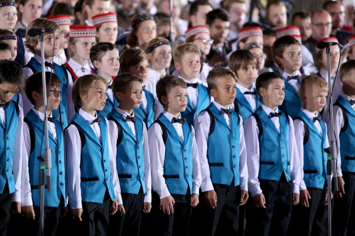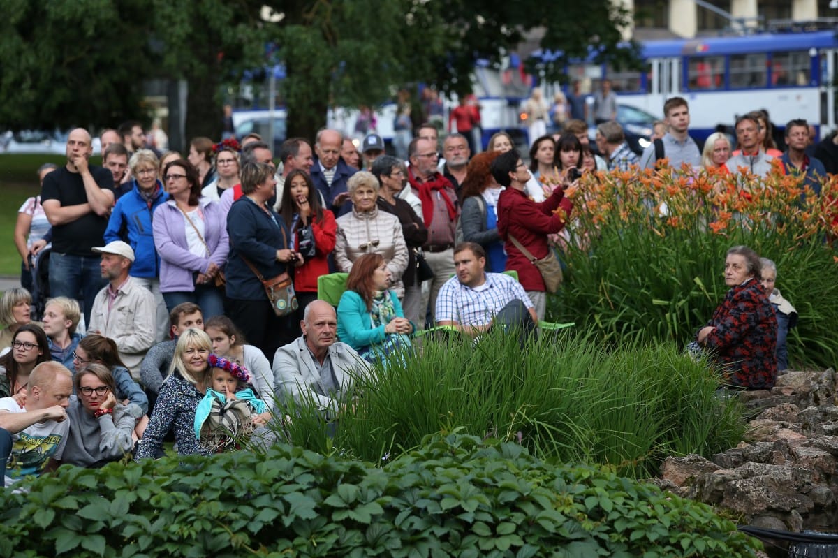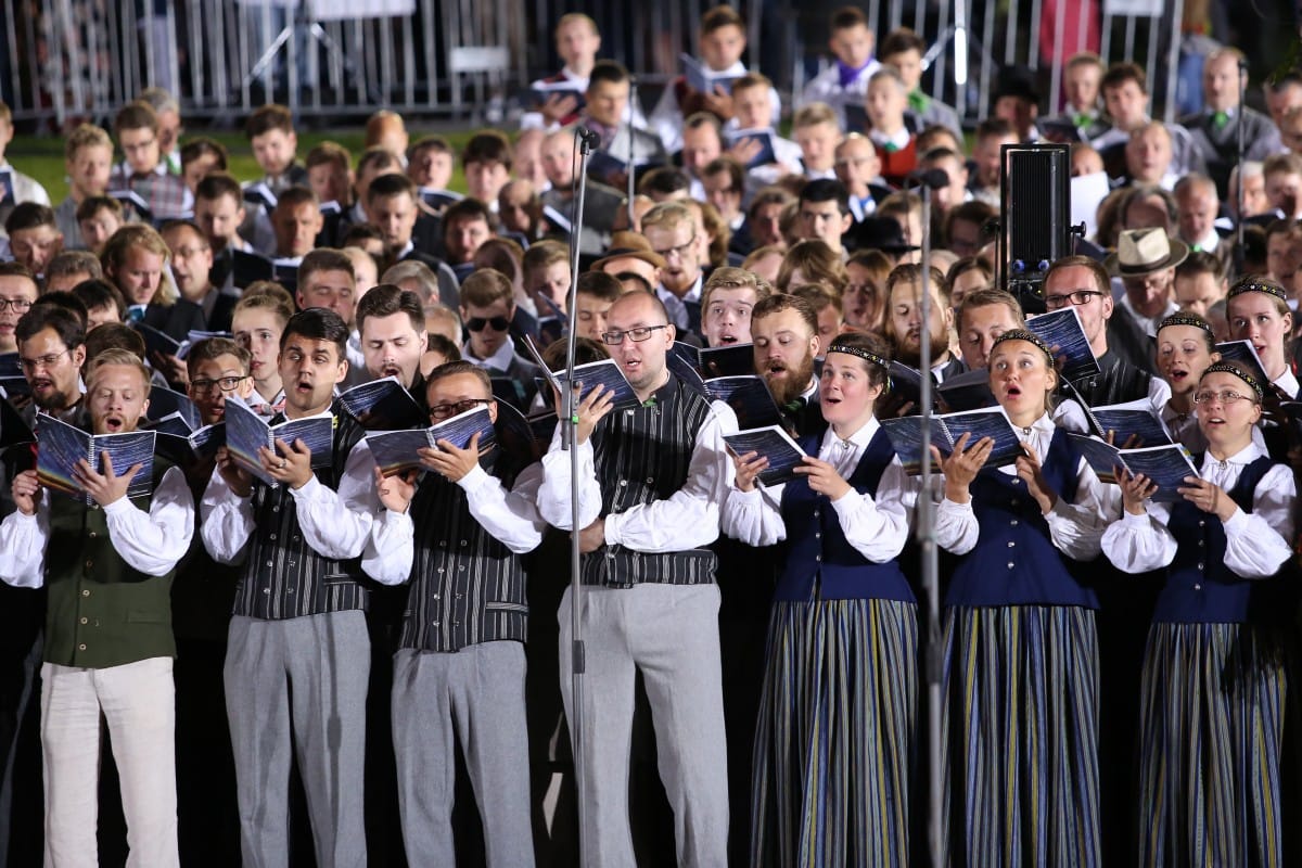 2017. gada 21. jūlijā Bastejkalnā rīdzinieki un Eiropas koru olimpiādes dalībnieki varēja iepazīties ar Simtgades #DzSv Noslēguma koncerta "Zvaigžņu ceļā" repertuāru Rīgas pilsētas kolektīvu izpildījumā. LNKC publicitātes foto.