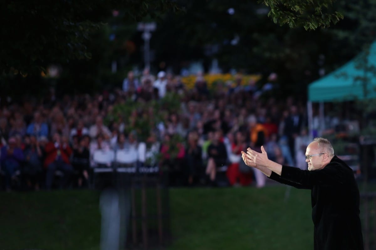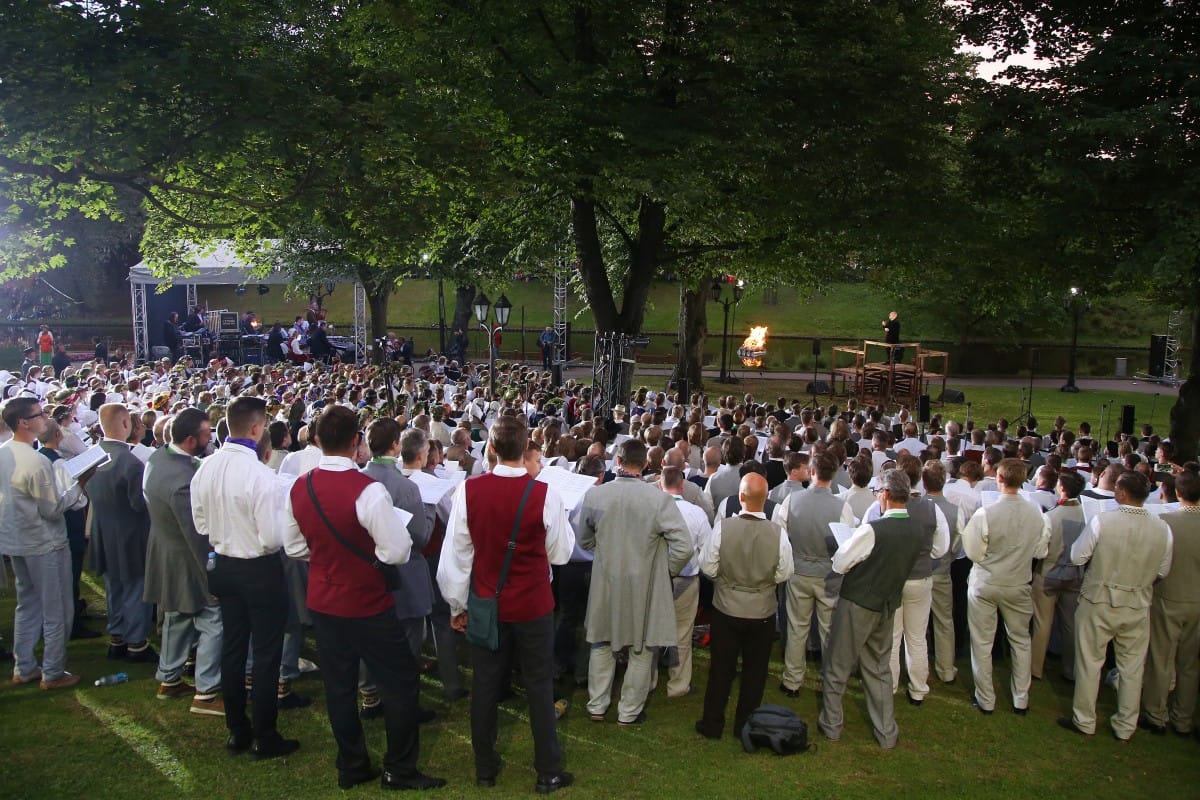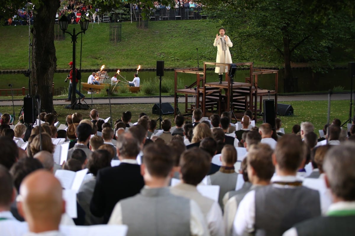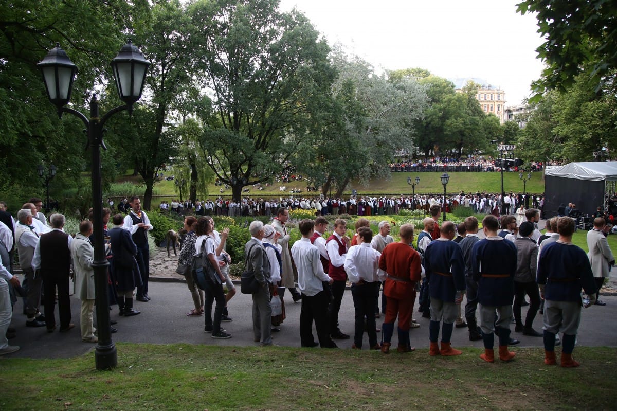 2017. gada 21. jūlijā Bastejkalnā rīdzinieki un Eiropas koru olimpiādes dalībnieki varēja iepazīties ar Simtgades #DzSv Noslēguma koncerta "Zvaigžņu ceļā" repertuāru Rīgas pilsētas kolektīvu izpildījumā. LNKC publicitātes foto.