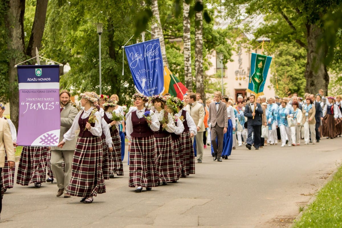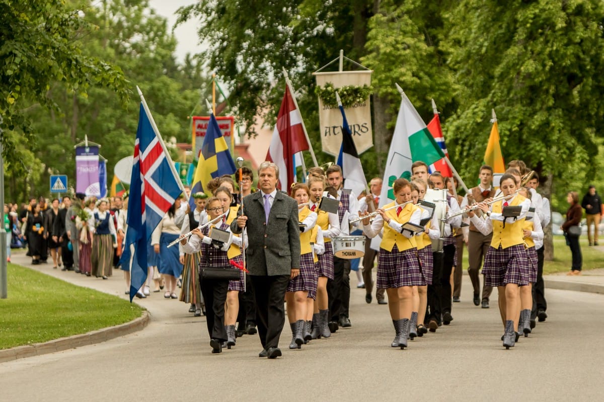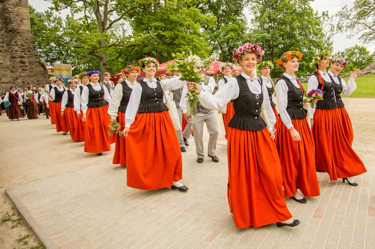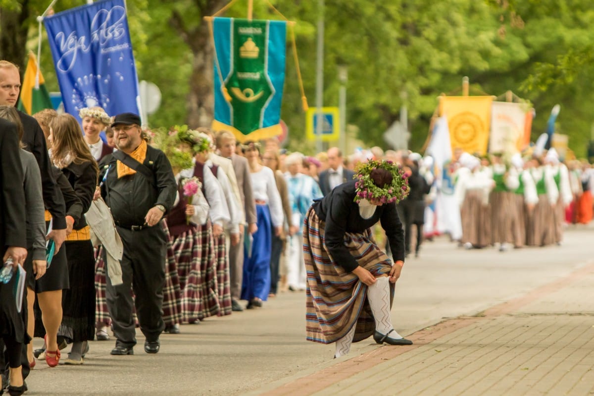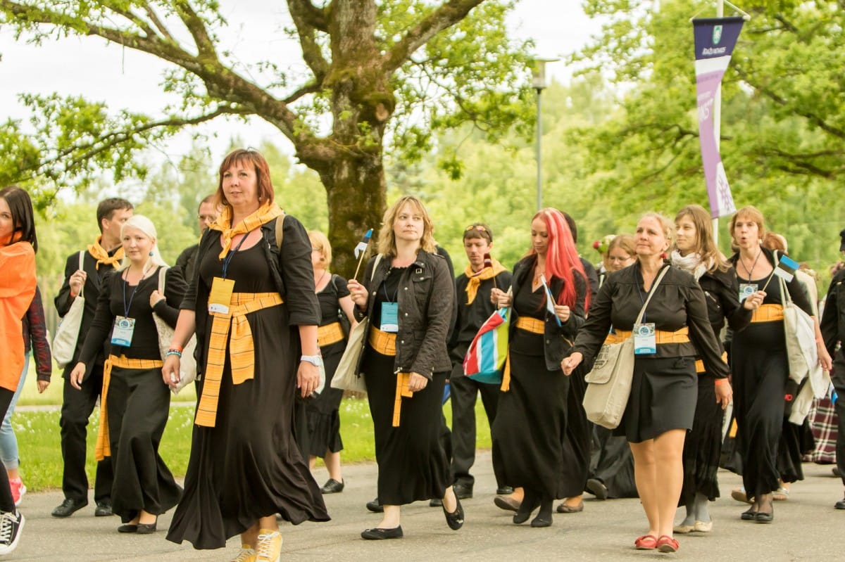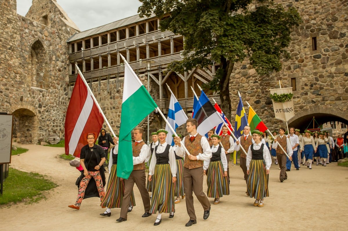 VIII Ziemeļu un Baltijas valstu Dziesmu svētku gājiens no Siguldas dzelzceļa stacijas līdz Pilsdrupu estrādei 2015. gada 27. jūnijā.