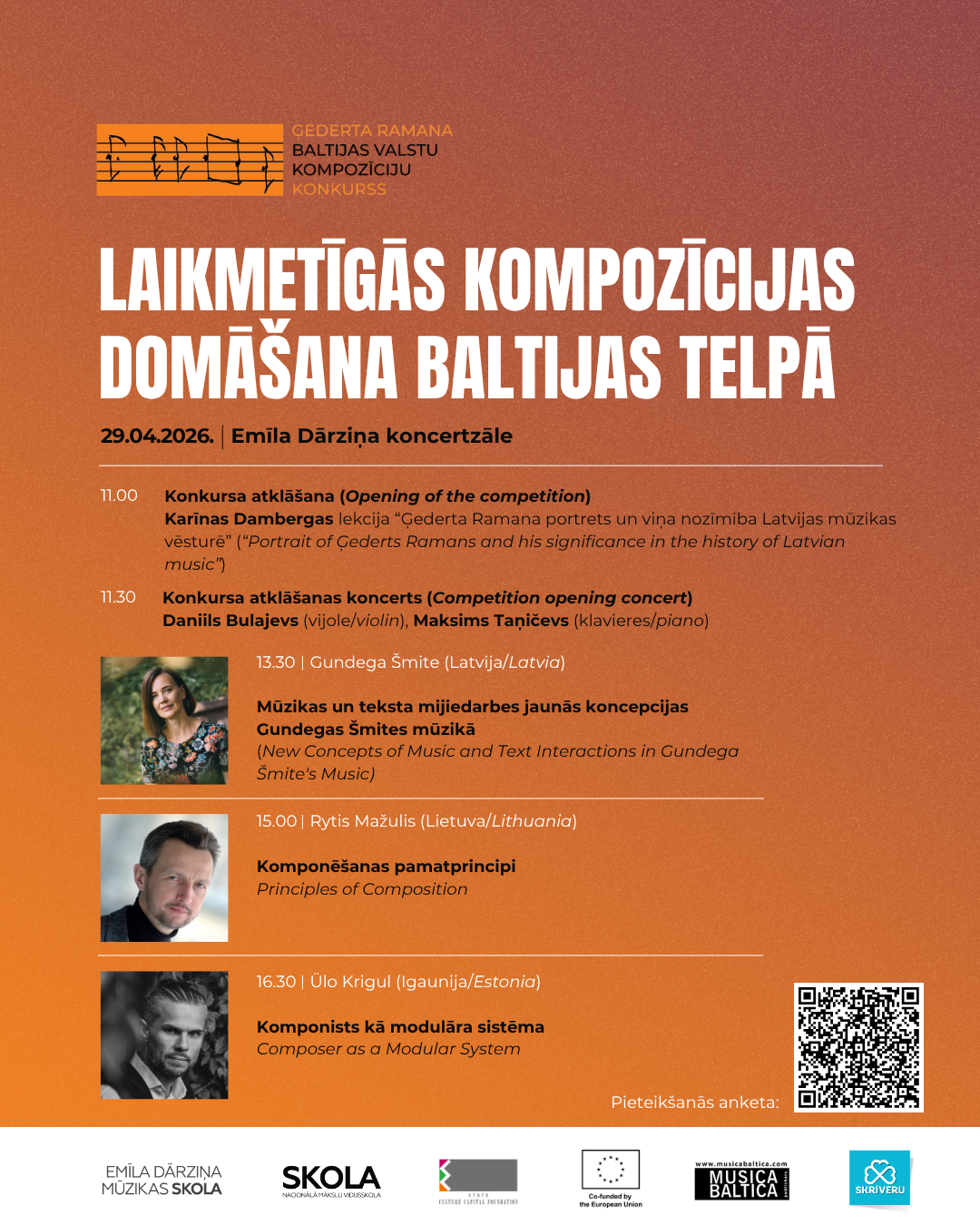 Pedagogu profesionālās kompetences pilnveides programma - izglītojošo lekciju cikls “Laikmetīgās kompozīcijas domāšana Baltijas telpā: mūzikas un teksta mijiedarbe, strukturālās sistēmas un komponēšanas pamatprincipi”