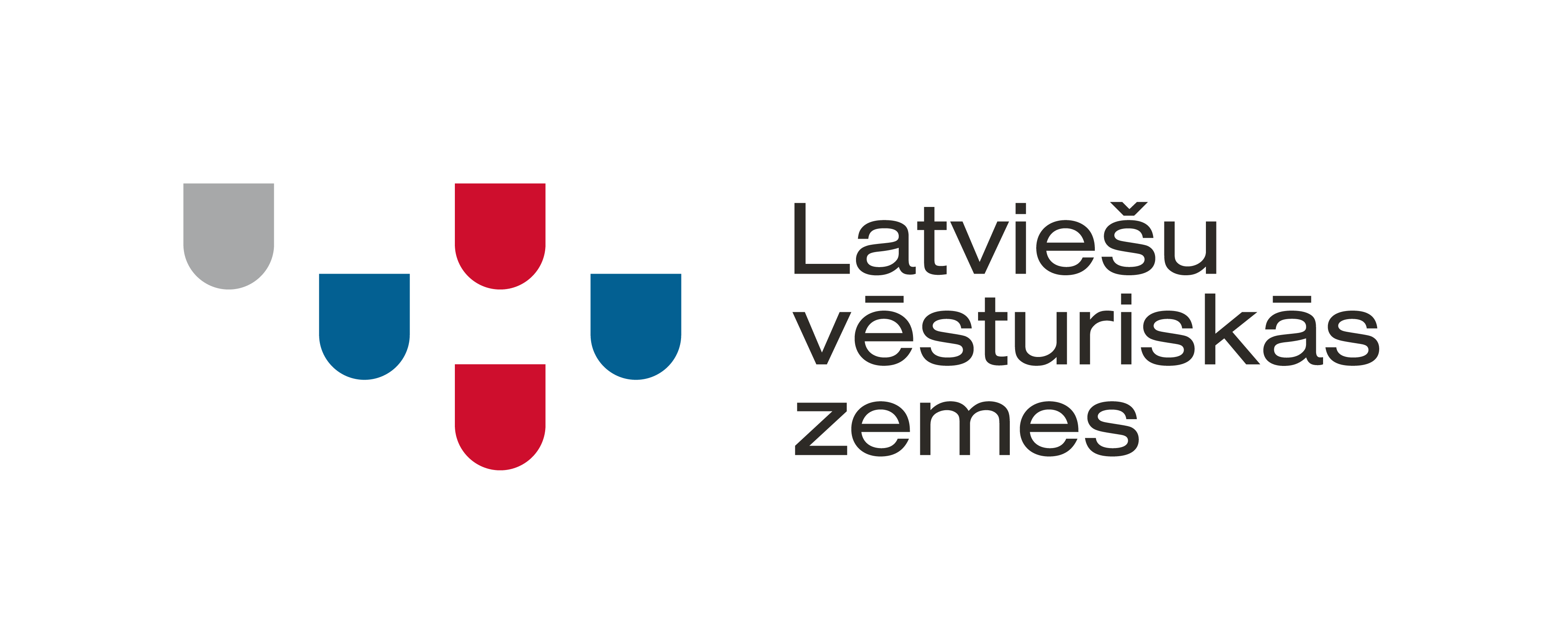 Vairogu kompozīciju logotipā papildina uzraksts “Latviešu vēsturiskās zemes”, to burtveidolam organiski sasaucoties ar tīro grafisko valodu – moderns un ar skatu nākotnē, taču tajā pašā laikā arī ar lielu cieņu pret mūsu vēsturi.